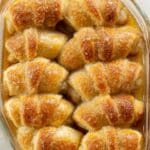 - Bake the Dumplings: Place the baking dish in the preheated oven and bake for 35 to 45 minutes or until the crescent rolls are golden brown and cooked through.
