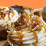 - Step 10: Pipe a thick circle of frosting on each cupcake, leaving a hollow center to create a “caramel nest.”
