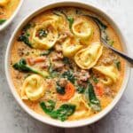 Keywords: Crockpot soup, tortellini soup, Italian sausage soup, slow cooker recipes, comfort food, creamy soup