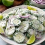 It’s best to prepare this salad shortly before serving to maintain the cucumbers’ crispness and avoid sogginess. If you need to make it ahead, keep the dressing separate and toss just before serving.