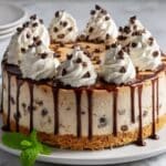 This Decadent No Bake Cookie Dough Cheesecake combines a crunchy graham cracker crust with layers of creamy no-bake cheesecake filling and edible cookie dough studded with mini chocolate chips. Perfectly chilled and layered, it offers a luscious dessert experience without any baking required.