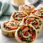 - Serve: Arrange pinwheels on a platter and serve immediately or chill for 30 minutes to firm up before serving.