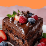 This fudgy flourless chocolate cake is a rich, decadent treat perfect for any chocolate lover. Its dense texture and intense flavor are complemented by a smooth chocolate ganache and optional fresh raspberries for a touch of brightness.