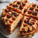 This Garlic Butter Tossed Heavenly Waffles Holiday Stuffing is a flavorful twist on traditional stuffing, featuring crisp waffle cubes mixed with savory sausage, fresh herbs, and sautéed vegetables. It’s a comforting and aromatic dish perfect for Thanksgiving or any winter gathering.