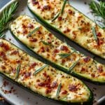 Gourmet Garlic Zucchini Steaks with Cheese offer a delicious and elegant way to enjoy this versatile vegetable. Crisped golden on the outside and tender inside, these zucchini steaks are layered with flavorful garlic, red pepper flakes, and a melty blend of mozzarella and Parmesan. Perfect as a side dish or a light vegetarian main.