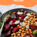 Keywords: chickpea salad, beet salad, Mediterranean salad, healthy salad, vegetarian salad, meal prep salad, feta cheese salad, roasted beets