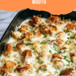 Keywords: Keto Chicken Alfredo Casserole, low carb casserole, keto dinner, cauliflower casserole, chicken casserole, keto alfredo sauce, baked keto dish