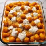 This Loaded Buffalo Chicken Tater Tot Bake is a delicious and easy dinner recipe combining tender shredded chicken in a creamy buffalo cheese sauce, topped with crispy golden tater tots. Perfect for game day or a comforting family meal, it offers a flavorful twist on classic comfort food with the spicy kick of buffalo sauce and cool ranch dressing.