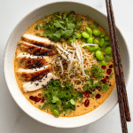 Marry Me Chicken Ramen is a comforting and flavorful fusion dish combining tender, golden-fried chicken breasts with a creamy, spicy broth infused with sun-dried tomatoes, smoked paprika, and parmesan. Paired with tender ramen noodles and fresh toppings like coriander, beansprouts, and edamame, this easy stovetop recipe delivers rich, satisfying flavors perfect for a cozy meal.