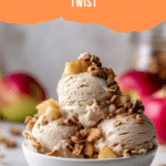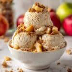 A delicious and creamy vegan, gluten-free apple crisp ice cream made with sautéed apples, coconut milk, and warming spices, prepared using the Ninja Creami for a smooth and flavorful frozen treat.