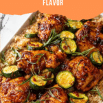 A flavorful one-pan meal featuring juicy chipotle honey chicken thighs baked alongside fluffy basmati rice and tender zucchini. This easy-to-make dish combines smoky chipotle spices, sweet honey glaze, and a hint of heat, all baked together for a delicious and comforting dinner.