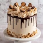 This Peanut Butter Chocolate Layer Cake is a decadent dessert featuring moist chocolate cake layers layered with creamy peanut butter frosting, chopped Reese’s candies, and finished with a rich chocolate ganache drip. Perfect for celebrations, it combines classic chocolate and peanut butter flavors for a crowd-pleasing treat that serves 12.