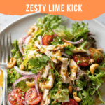 A vibrant and refreshing Thai Chicken Salad featuring tender boiled chicken breast, crisp mixed lettuce, fresh vegetables, and a tangy, sweet, and spicy dressing made with lime juice, fish sauce, and chili garlic sauce. This light and healthy salad is perfect for a quick lunch or dinner and is easy to prepare with simple ingredients.