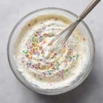 - Adjust and Use: Taste and adjust vanilla or sweetness if needed. Use immediately to frost your cakes or cupcakes, or refrigerate until ready to use. If refrigerated, allow to come to room temperature and re-whip before spreading.